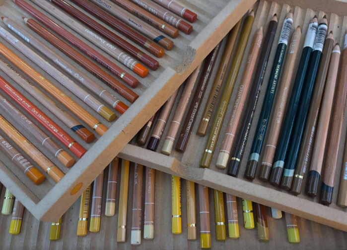 For a piece like this, I rely on my trusted colored pencil brands: Faber Castell Polychromos, Caran D’Ache Luminance and Pablos, and the Derwent range. I've also chosen my preferred surface, drafting film, which I love for the painterly effect I can achieve.